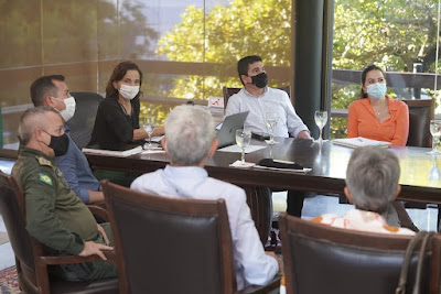 "Reunião nesta segunda-feira com os secretários da Casa Civil, Segurança Pública e Proteção Social para discutirmos ações de prevenção e combate à violência em nosso estado. "
